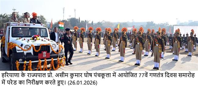 पंचकूला, 26 जनवरी: हरियाणा के राज्यपाल प्रौ. असीम कुमार घोष ने कहा कि स्वतंत्रता के बाद भारत ने दुनिया में एक मजबूत देश के रूप में पहचान बनाई है। इसमें हमारे नेताओं, किसान-मजदूरों, कारीगरों और वैज्ञानिकों का बड़ा योगदान है, जिन्होंने दिन-रात मेहनत कर देश को आगे बढ़ाया। उन्होने कहा कि देश की प्रगति में हरियाणा का अहम योगदान है।